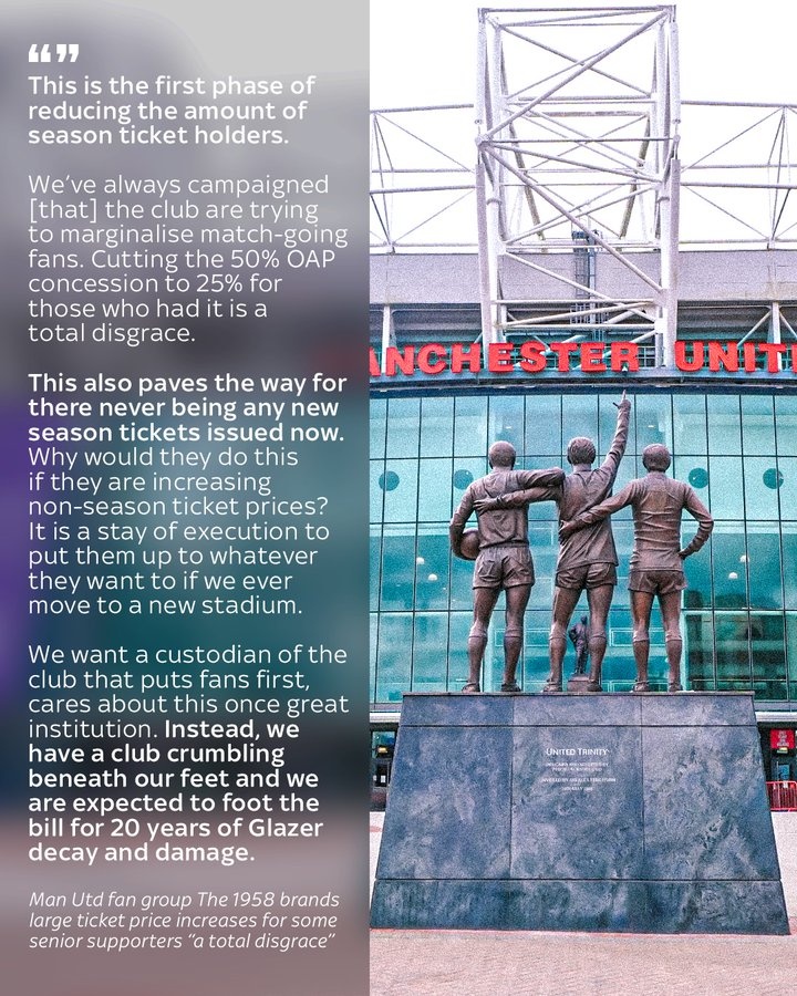the 1958表示:“这是减少季票持有者数量的第一阶段,我们一直反对俱乐部将球迷边缘化的做法。将原有的50%的优惠削减至25%,这完全是一种耻辱。”
