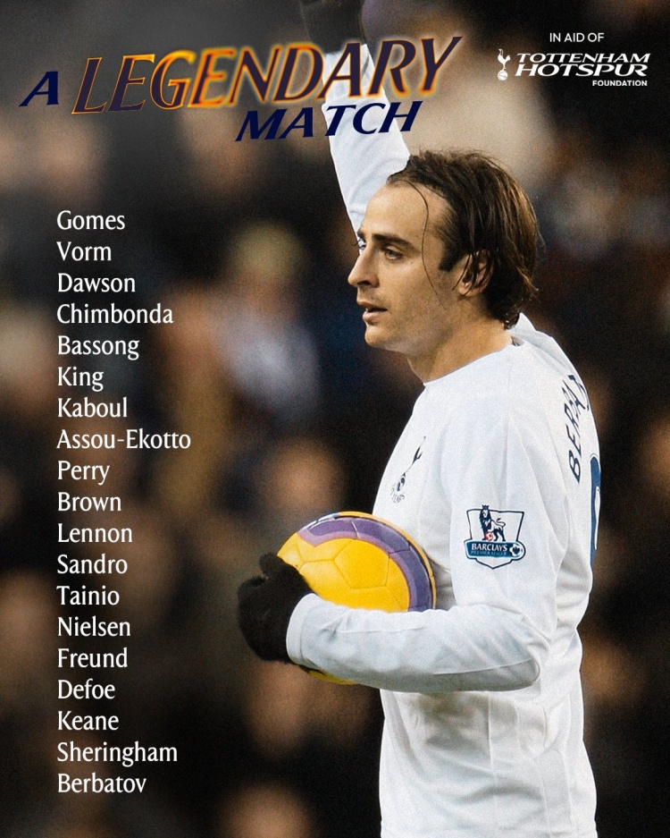 3月23日讯 北京时间今天晚上22点,热刺传奇队将对阵米兰荣耀队,热刺公布了传奇赛的球员名单,贝尔巴托夫、谢林汉姆、迪福、罗比-基恩在列。