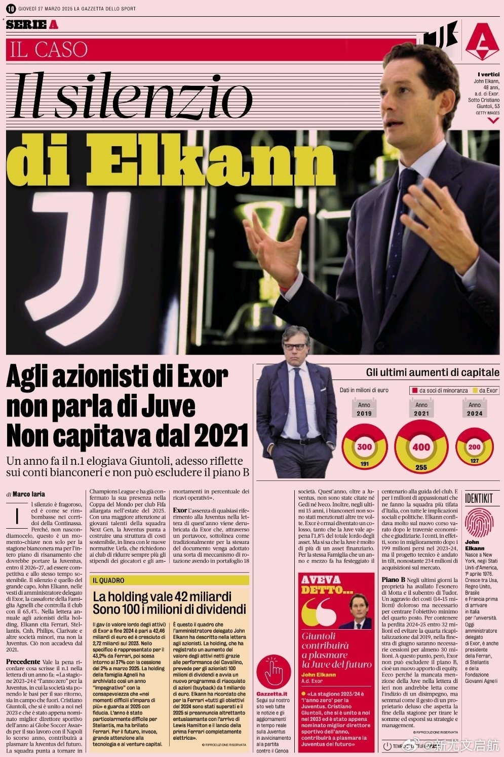 自 2021 年以来,Exor 的信中首次没有提到尤文图斯,也没有提及其未来计划。