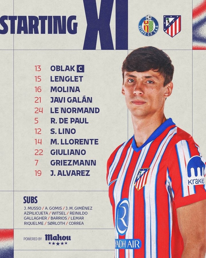 马竞官方宣布,原本首发的朗格莱热身时感到身体不适,吉梅内斯将替代他首发出战。
