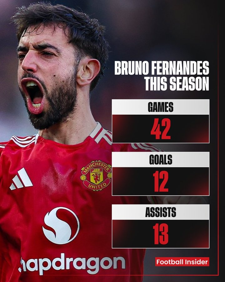 本赛季,B费各项赛事出场42次,贡献12个进球和13个助攻,并创造了87次机会。